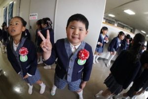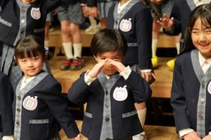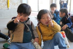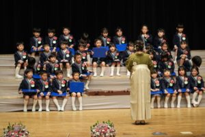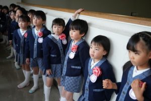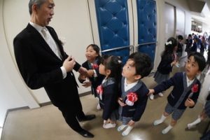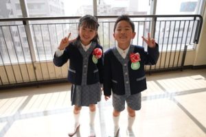 おめでとう〜!いよいよ今日から飯倉幼稚園の元気なお友だちです。