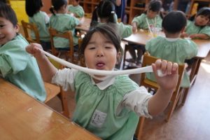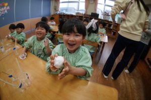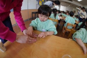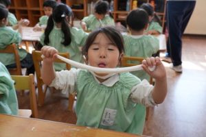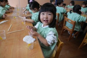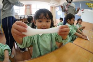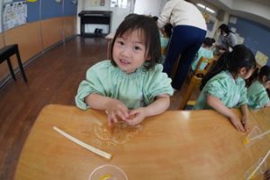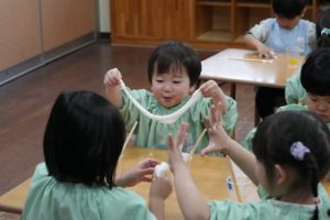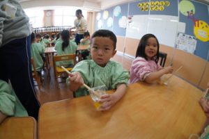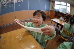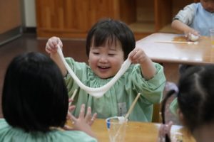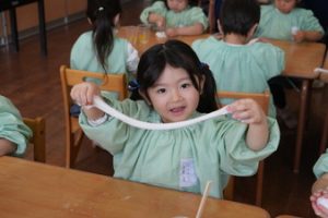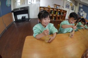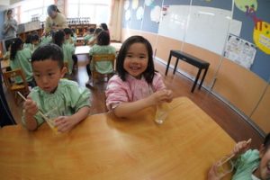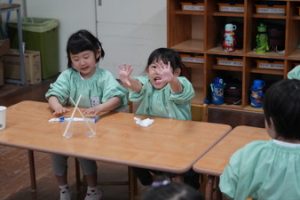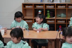 | (幼稚園でも朝から夕方まで預けられるんです!) 通常保育時間外に預かり保育を設定しております。 |