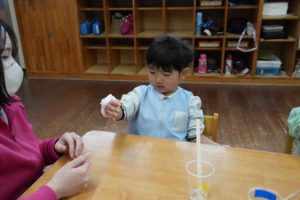 | 3/17(水) | 幼稚園体験・5クラス (10:30~11:30時間内自由参加) | 10:30~11:30 時間内自由参加 | 計10名 | お茶 タオル 着替え等 | 会員登録制 |